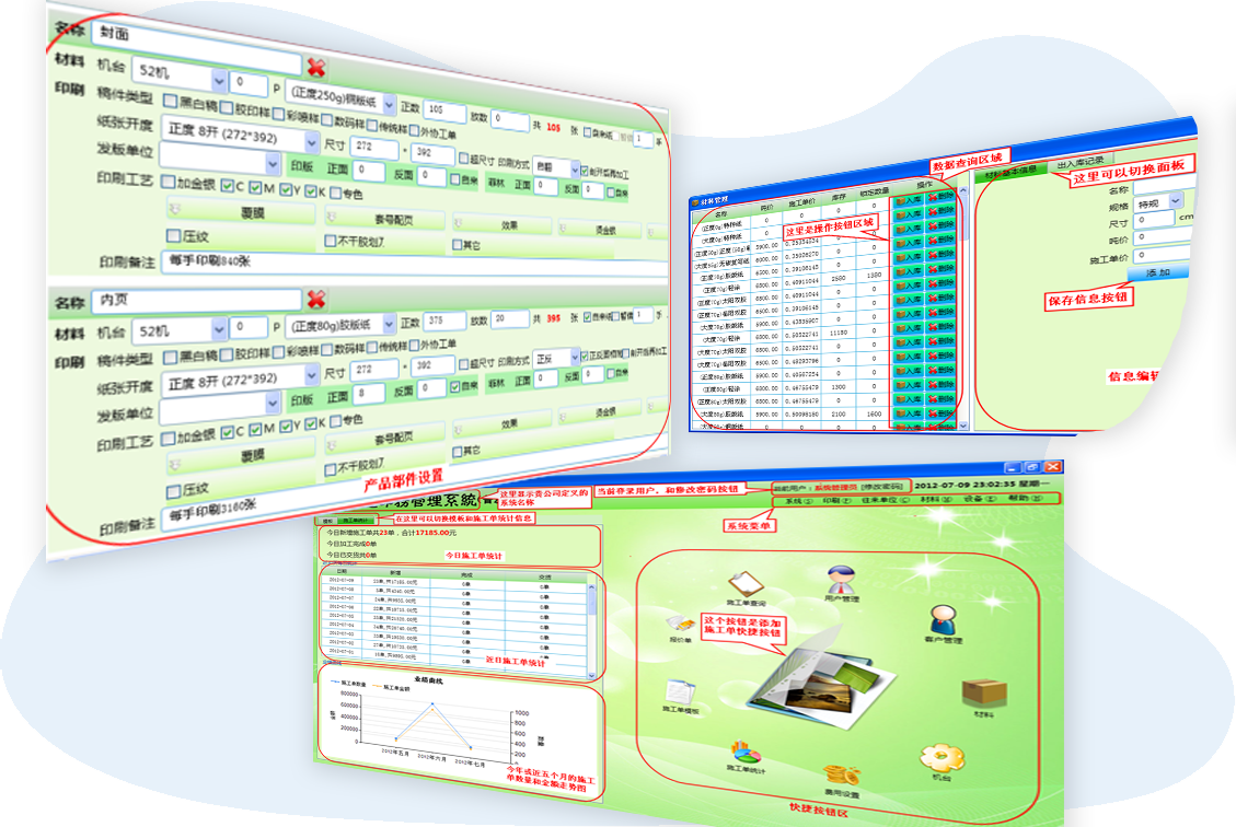 • 可實現(xiàn)印刷流程無紙化管理,包括財務(wù)、機臺、銷售多端功能,數(shù)據(jù)自動流轉(zhuǎn)。